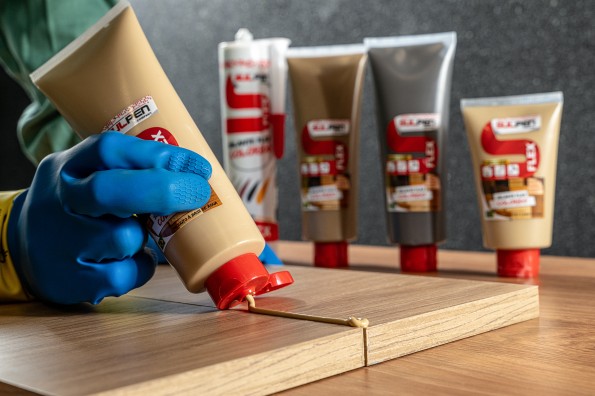 Ideal para el acabado de suelos laminados, también en cocinas y baños, para rellenar huecos durante el montaje de muebles y entre muebles y paredes.